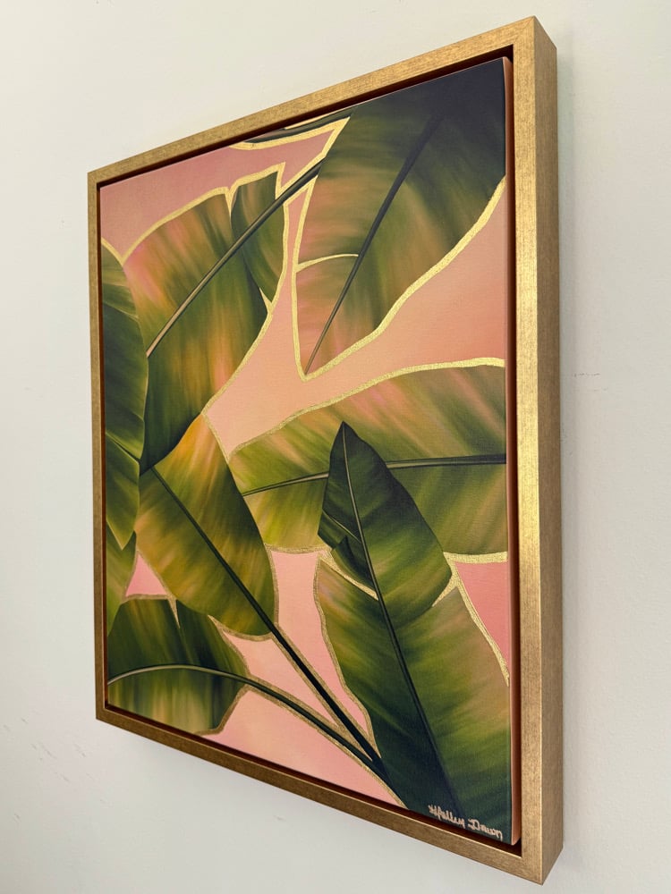 This listing is for a 16”x20” limited edition stretched canvas print, mounted inside a wooden gold floater frame. With the frame included the measurements are closer to 17”x21”. The frame is 1.5” deep, wired on the back, and ready to hang.