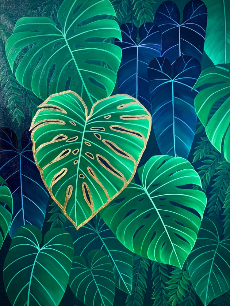 This listing is for an original acrylic painting with a genuine 24k gold leaf details, measuring 30”x40” on stretched 1.5” deep canvas.
