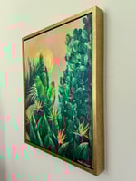 This listing is for a 16”x20” limited edition stretched canvas print, mounted inside a wooden gold floater frame. With the frame included the measurements are closer to 17”x21”. The frame is 1.5” deep, wired on the back, and ready to hang.
