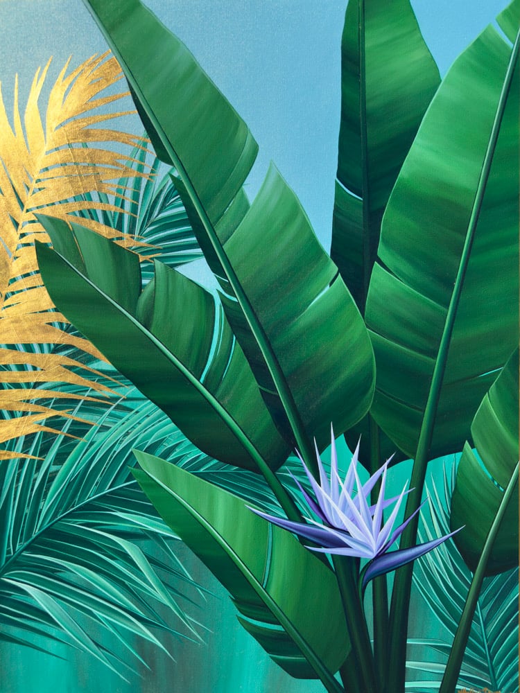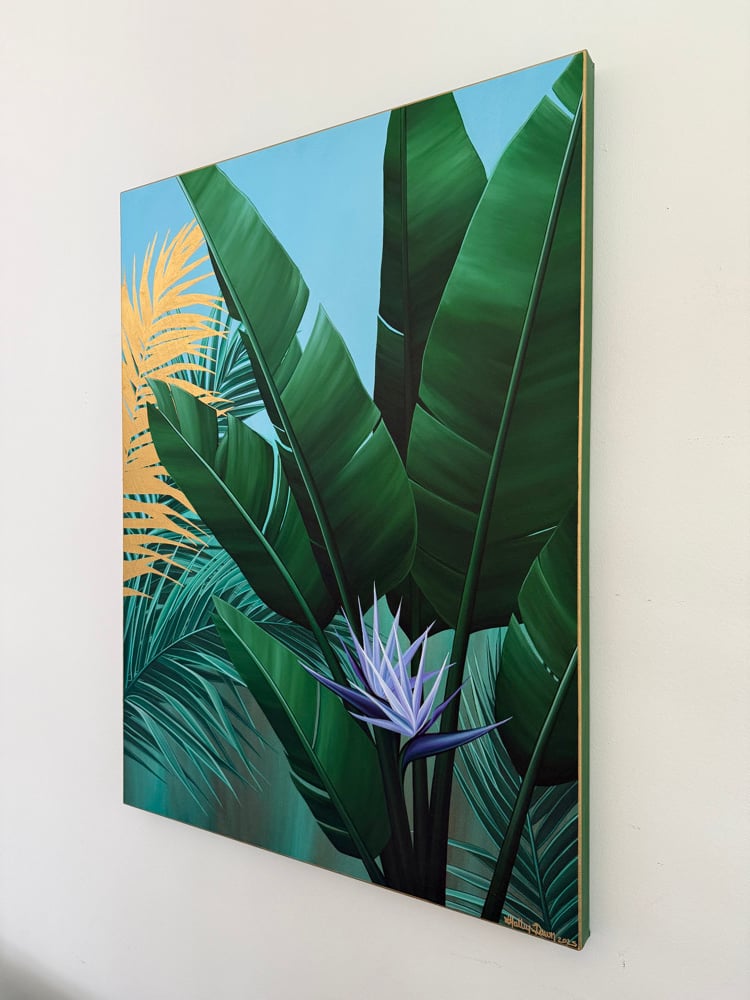 This listing is for an original acrylic painting with a genuine 24k gold leaf and iridescent details. It measures 30”x40” on stretched 1.5” deep canvas.
